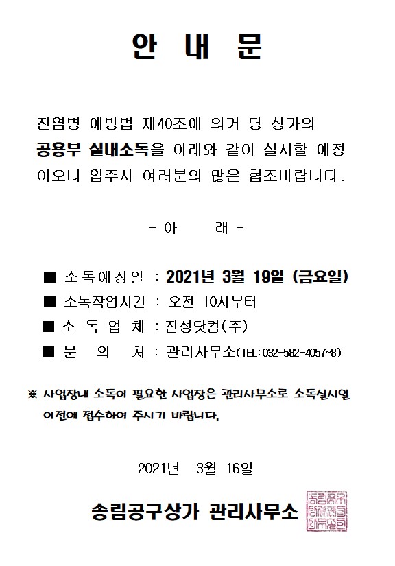 3월 공용부 실내소독 안내문
