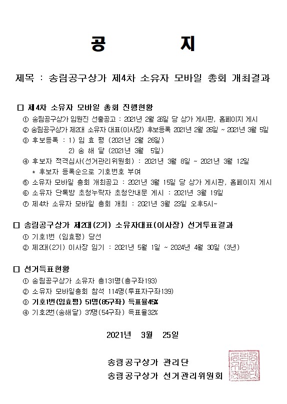 송림공구상가 제4차 소유자 모바일 총회 개최결과