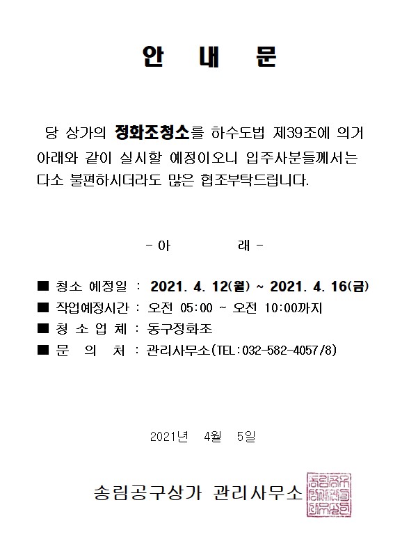 정화조청소 실시 안내문