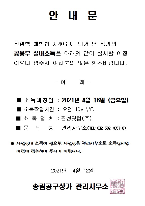 송림공구상가관리단 제54차 정기이사회 개최 안내