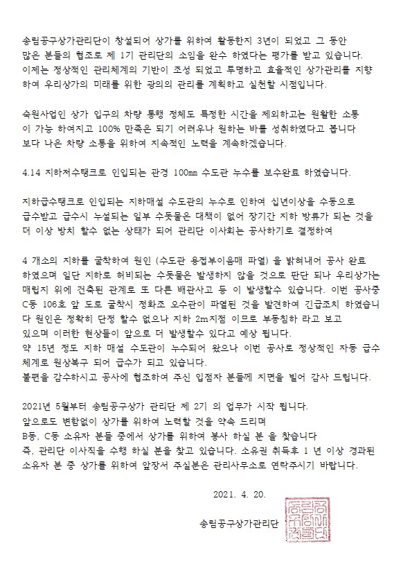 송림공구상가관리단 공지사항