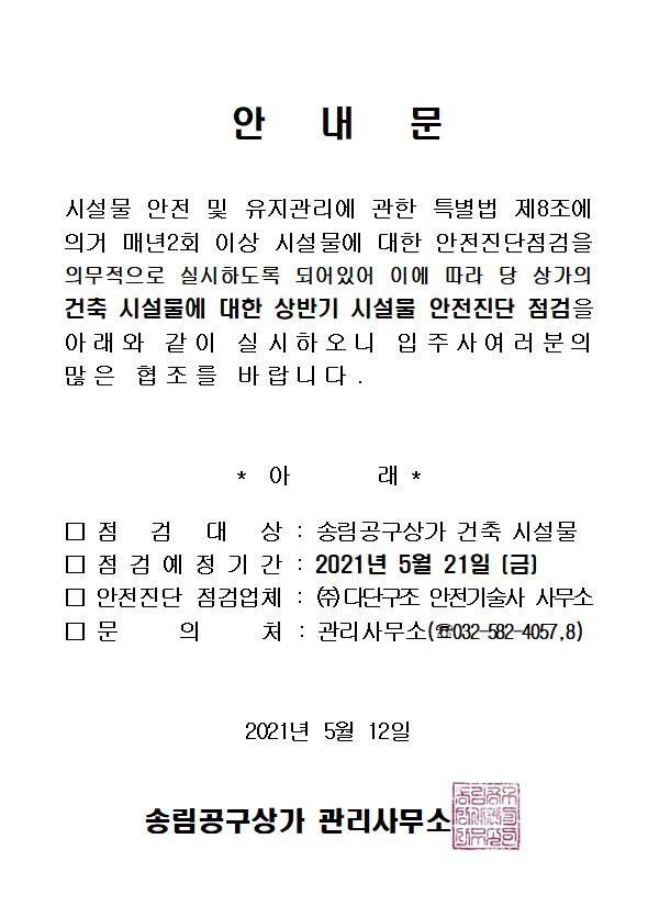 상반기 시설물안전진단 점검 안내문