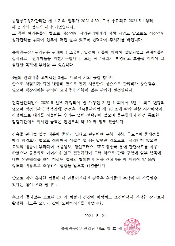 송림공구상가관리단 공지사항
