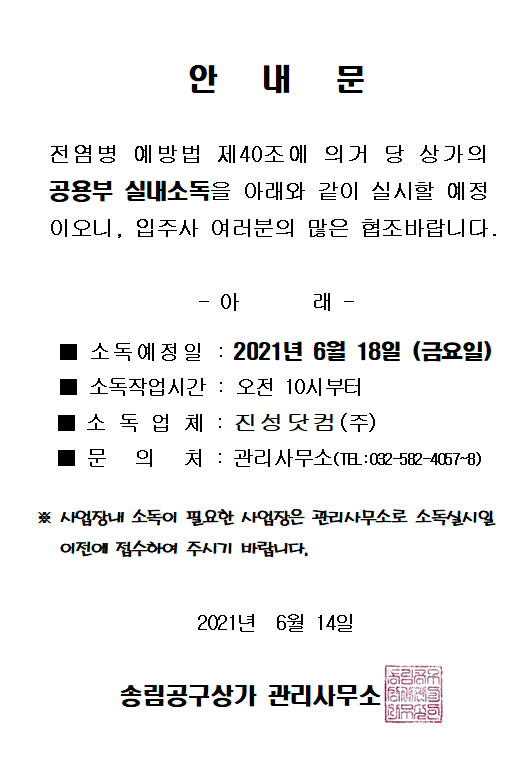 6월 공용부 실내소독 안내문