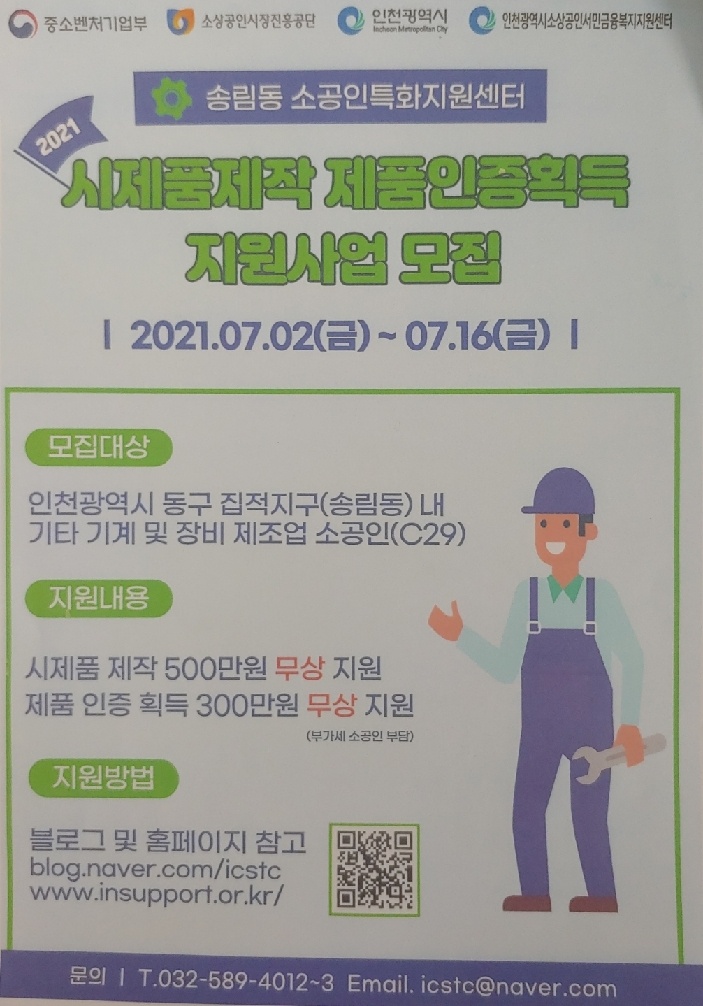시제품제작 제품인증획등 지원사업모집 안내문(송림동 소공인특화지원센터)
