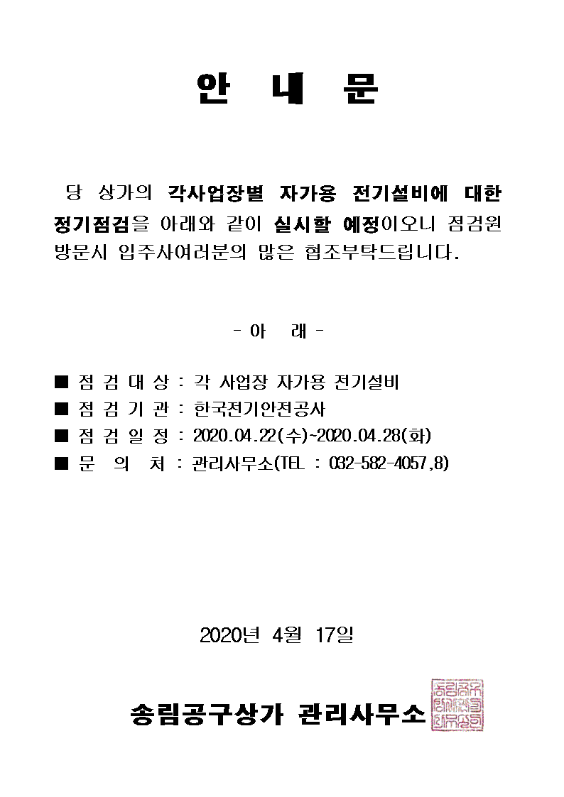각사업장 전기설비 정기정검 안내