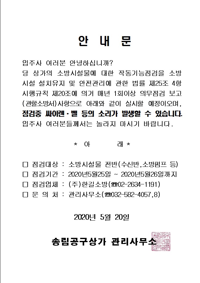 소방시설물 작동기능점검 안내문