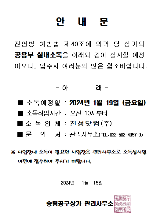 송림공구상가관리단 제95차 정기이사회 개최안내