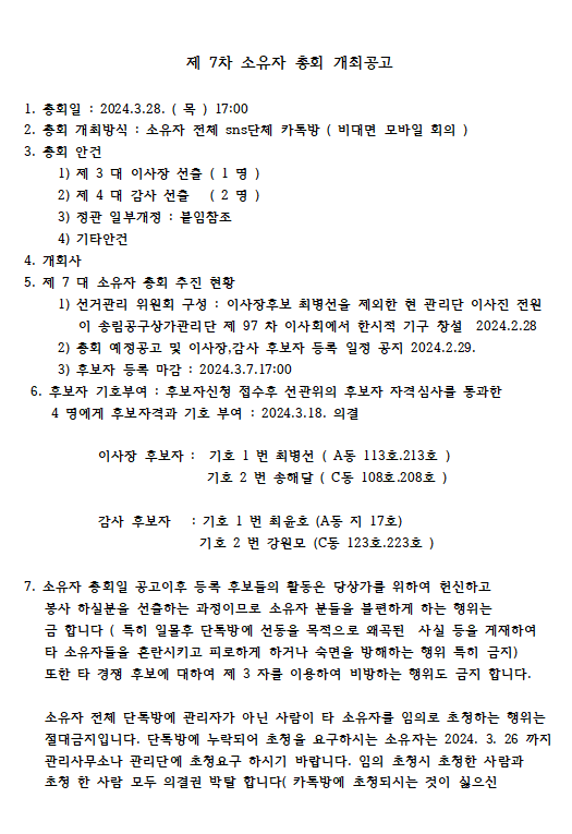 송림공구상가 제7차 소유자 총회 개최공고