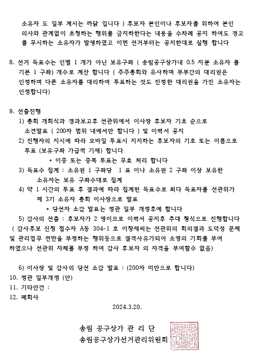 송림공구상가 선거관리위원회 공지