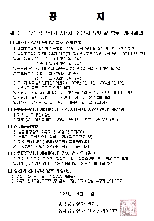 송림공구상가 제7차 소유자 모바일 총회 개최결과