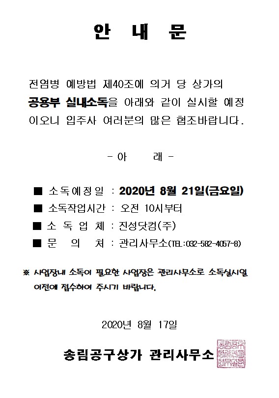 8월 공용부 실내소독 안내문