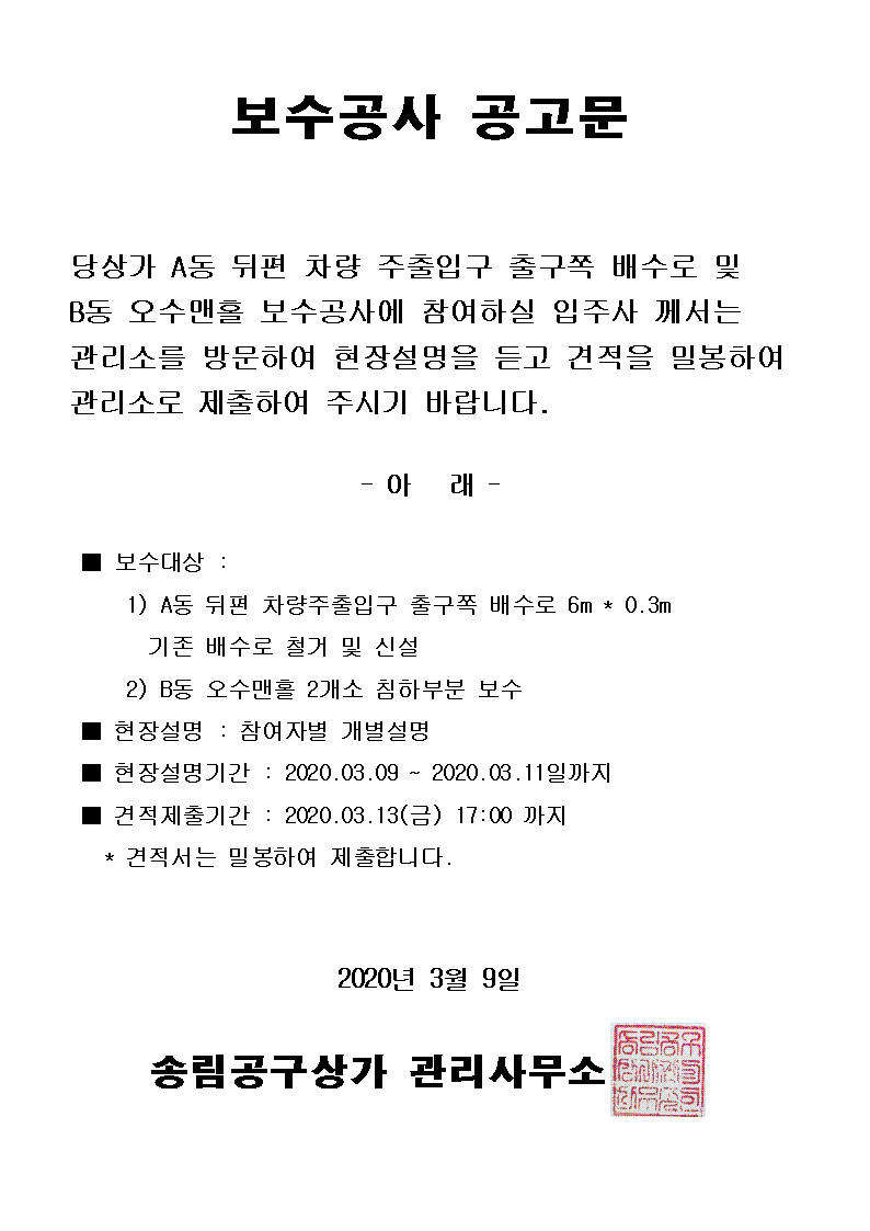송림공구상가 제 3차 소유자 총회에 관한 공지
