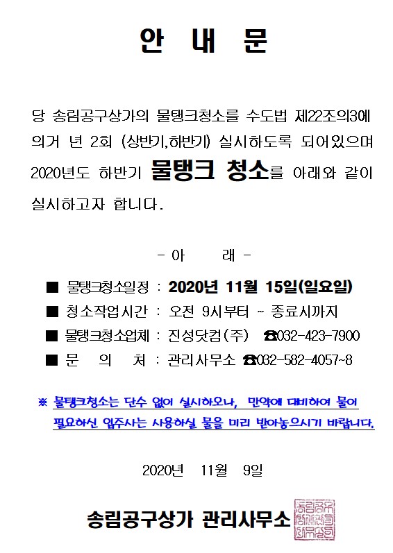 하반기 물탱크청소 안내문