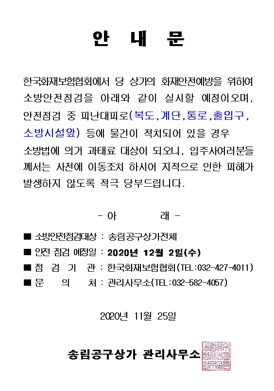 소방안전점검 실시 안내문