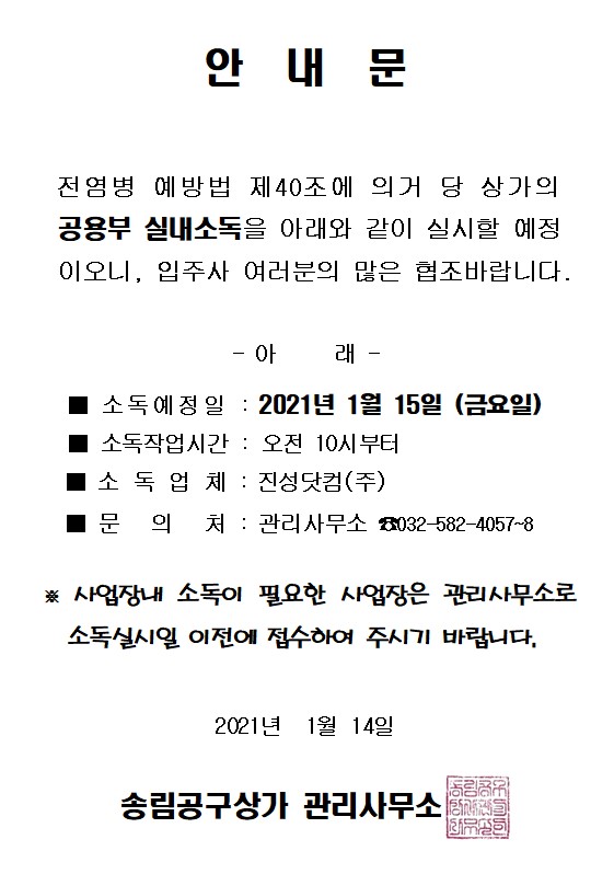 1월 공용부 실내소독 안내문